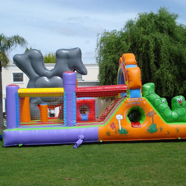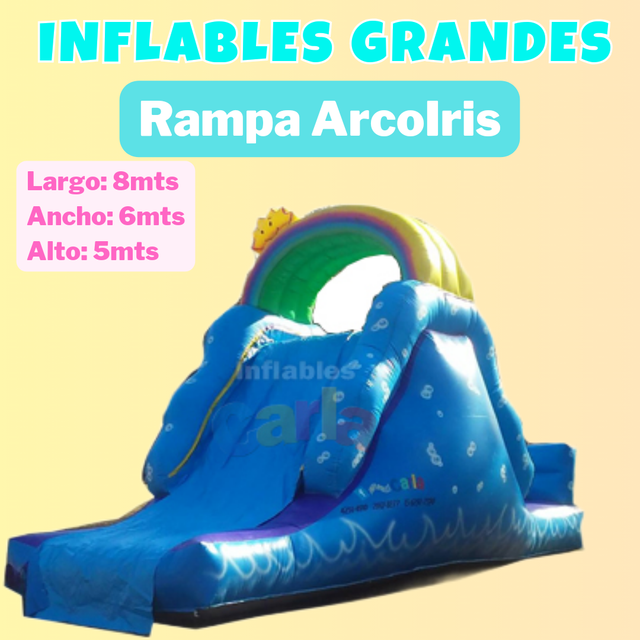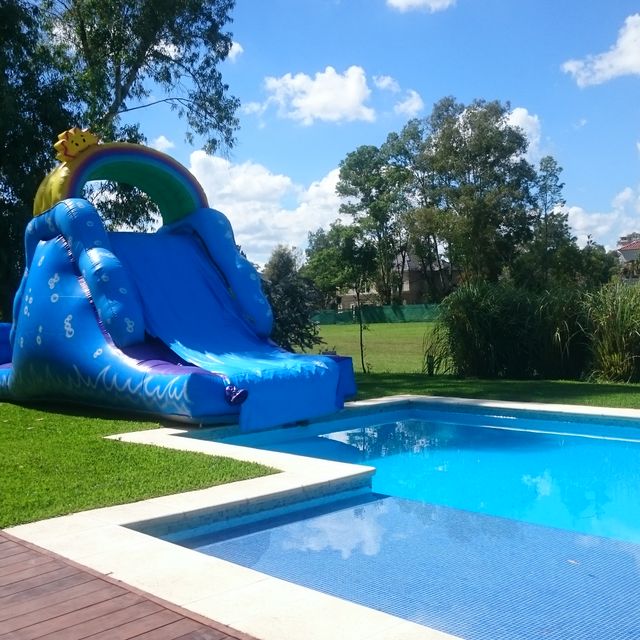 Para este inflable necesitas un espacio de 9x5mts.