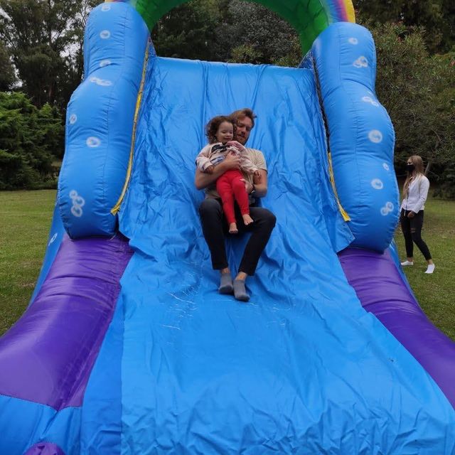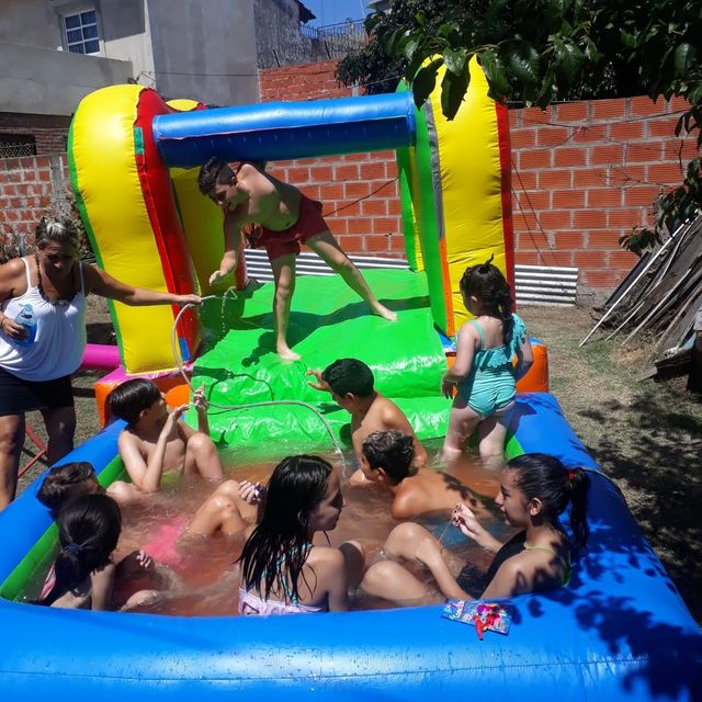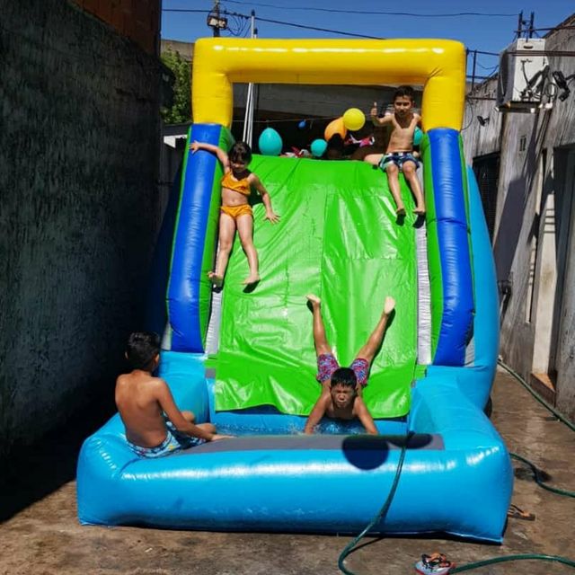 Es el inflable mas chiquito con tobogan.