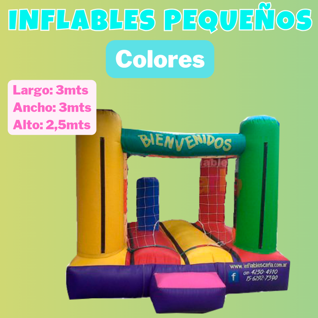 Para este inflable chiquito necesitas un espacio de 3x3 por 2,20 mts de altura.